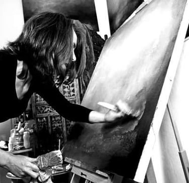 “Whether I’m working on a landscape or an expressive abstract piece, it’s the music that steers me through”.