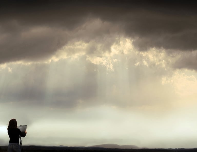 Kerr grew up in North Yorkshire under the drama of northern skies. With the moors to her south, the powerful North Sea to her east and the contrasting industrial landscape to her north, she was surrounded by a wealth of inspiration. She found much needed solitude in the arts from a very early age. In her thirties and for almost two decades Kerr lived and travelled extensively throughout Europe, absorbing the land, sea and sky and fully focussing on her artistic practice. She studied the works of the Old Masters - as well as those of her favourite modern and contemporary painters - and continued to master her own craft, adopting a variety of techniques and blending them with her own.