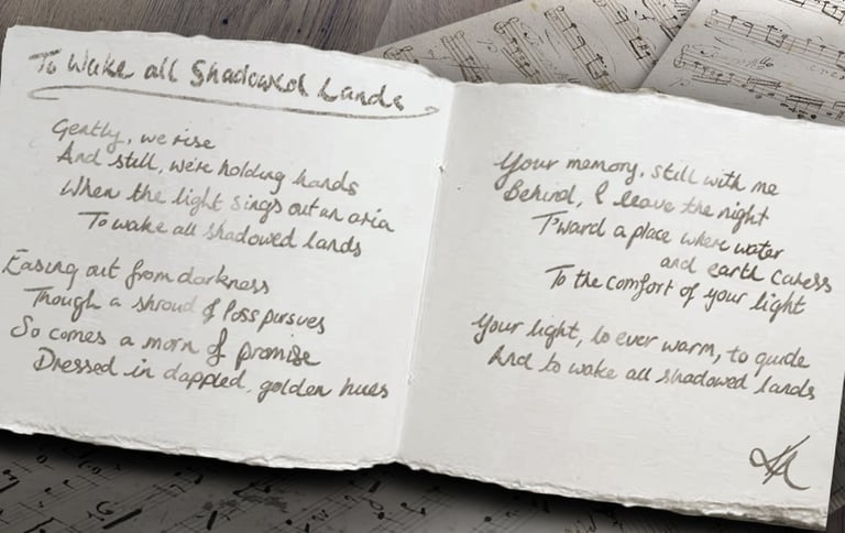 The collection began - as do many of Kerr's - with musical composition. In Spring 25 Kerr wrote three pieces for piano, one of which, ‘To Wake all Shadowed Lands’, became the foundation for a poem, the narrative from which this new body of work was made.